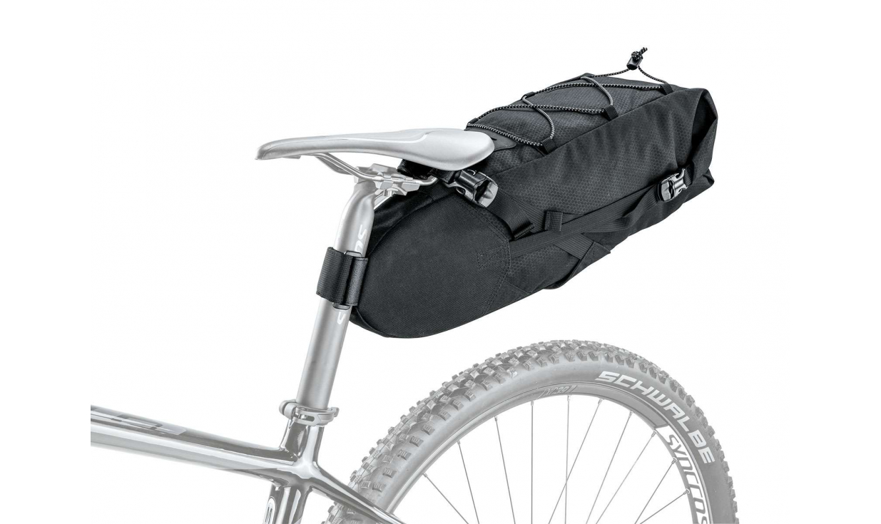 La Topeak Backloader è costituita da un nylon robusto e leggero allo stesso tempo. Una sacca interna waterproof aggiuntiva è fornita con la sacca (indice d’impermeabilità 10000 mm, vale a dire che è impermeabile sotto ad un metro d’acqua).