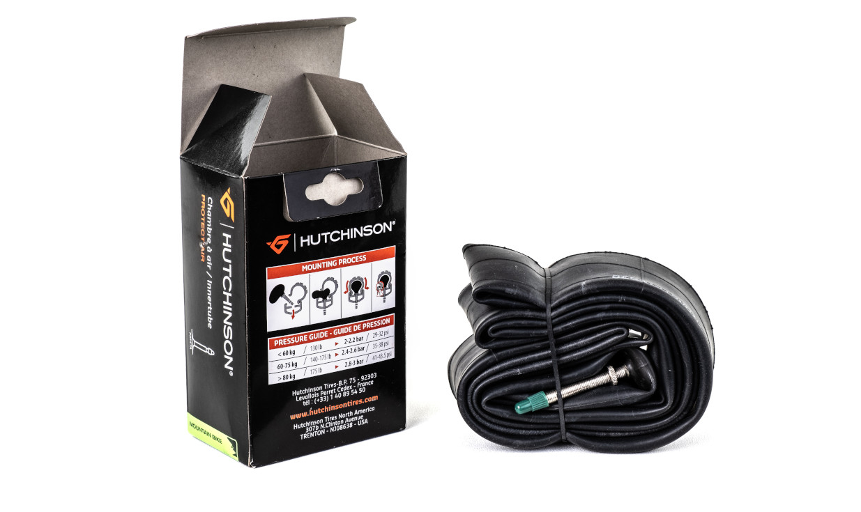 Camera d’aria in butile con liquido preventivo Hutchinson Protect’Air che ripara immediatamente le forature (fino a 3 mm).