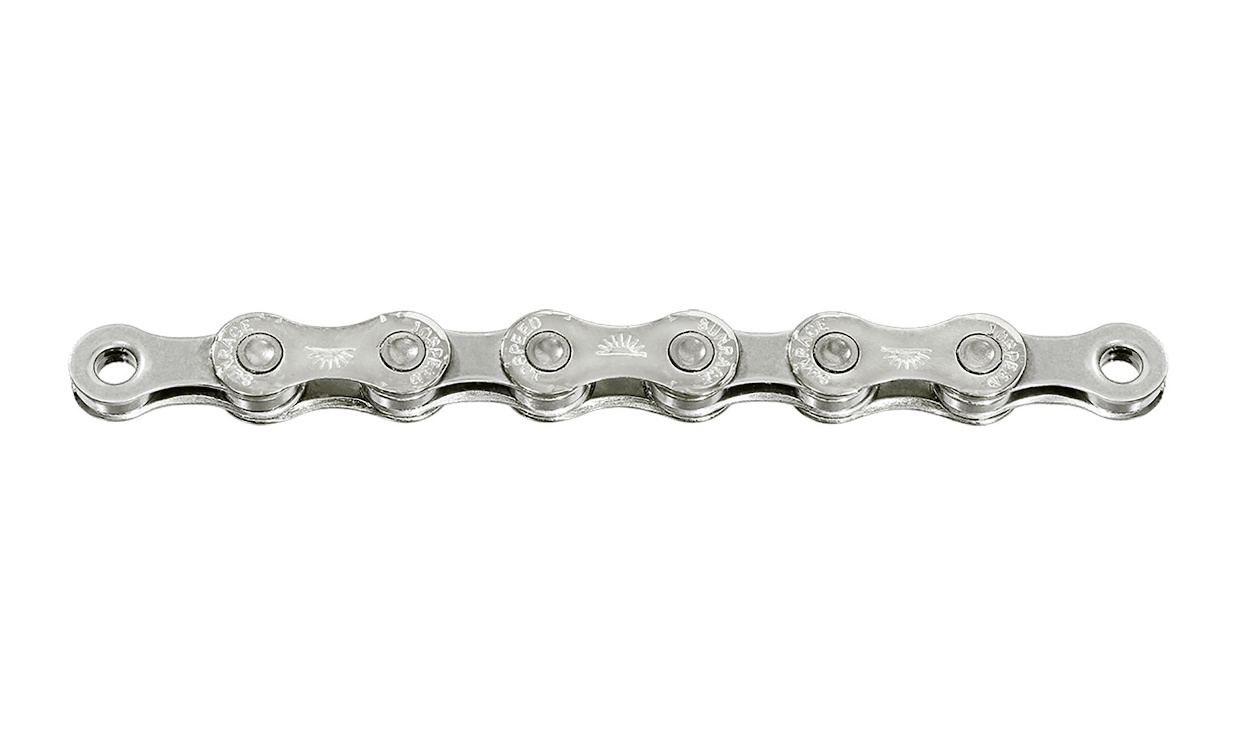 Questa catena a 10V Sunrace è compatibile con le trasmissioni a 10 velocità, tra cui la