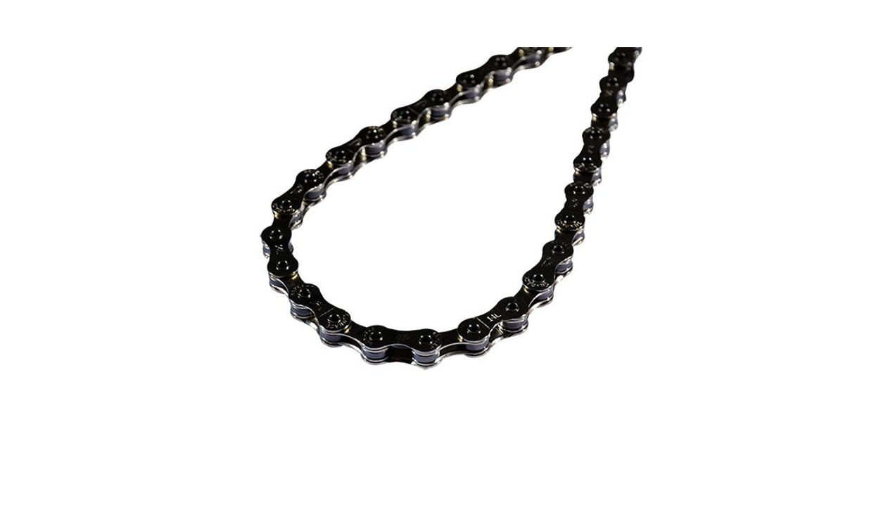 Le maglie 1/2 x 11/128″ in acciaio sono ricoperte da uno strato di Teflon che garantisce la longevità della catena, impedendo che si arrugginisca, e facilita lo scorrimento delicato da un pignone all’altro. La piastra interna è in acciaio SCM440; la piastra esterna e i rivetti sono in acciaio SCM435.