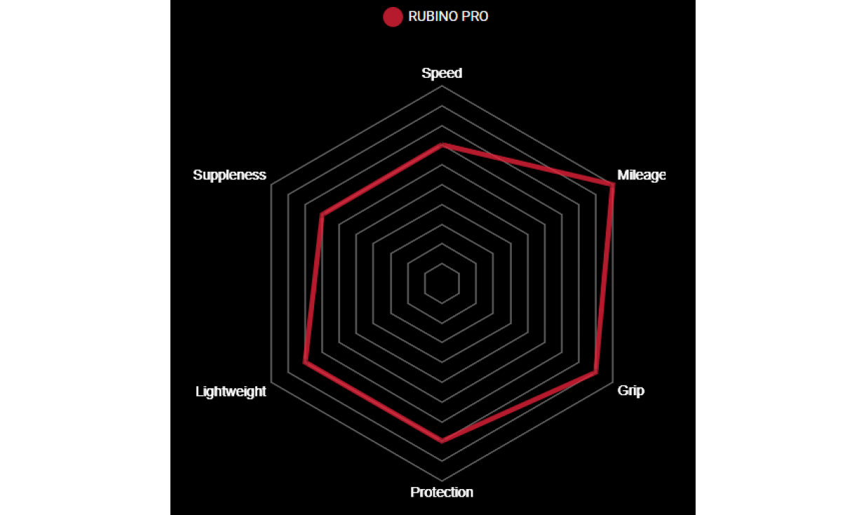 • Tubeless Ready: montaggio senza camera d’aria con l’aggiunta di liquido preventivo. Offre ancor più robustezza, comfort e rendimento rispetto al Rubino Pro IV Tubetype (che si monta con una camera d’aria).