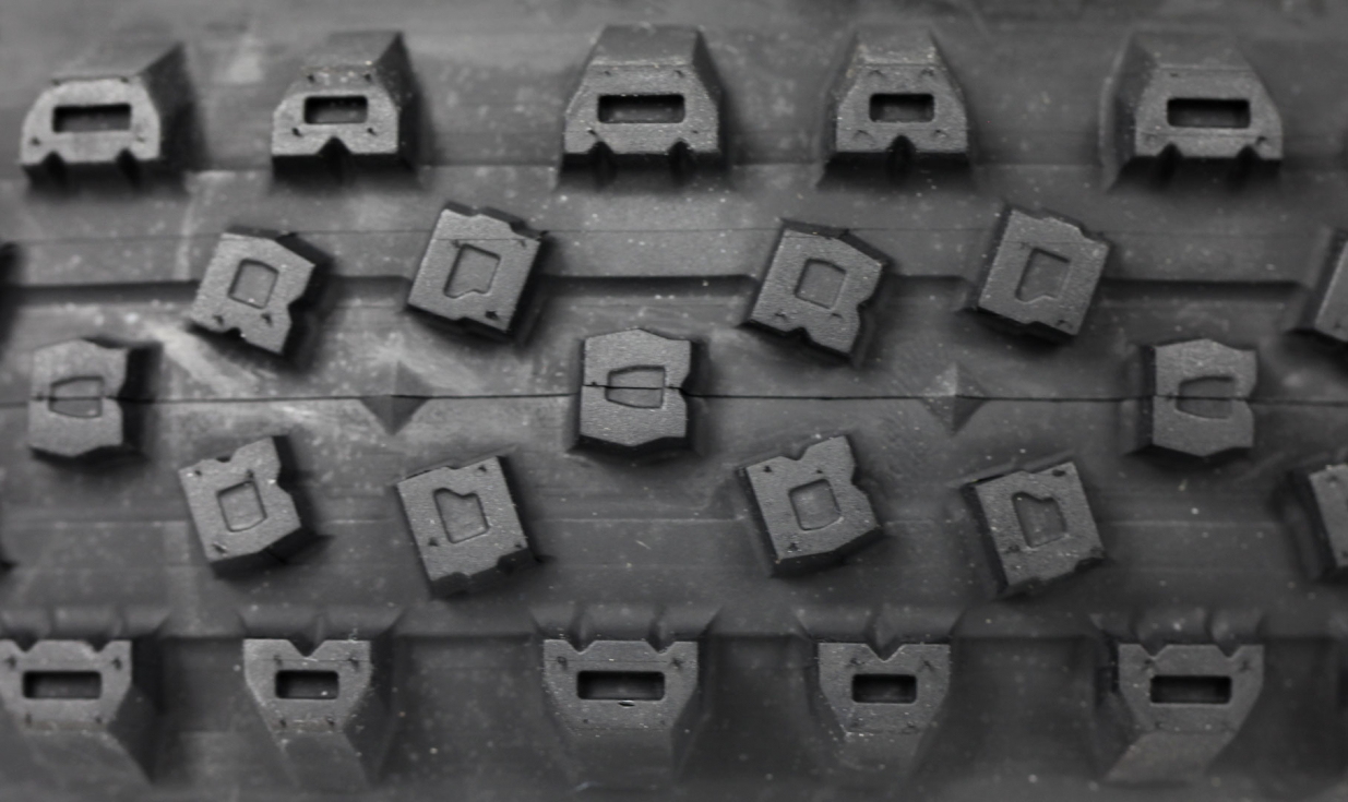 • Tasselli bassi sul battistrada per ottimizzare il rendimento e favorire l’espulsione del fango.