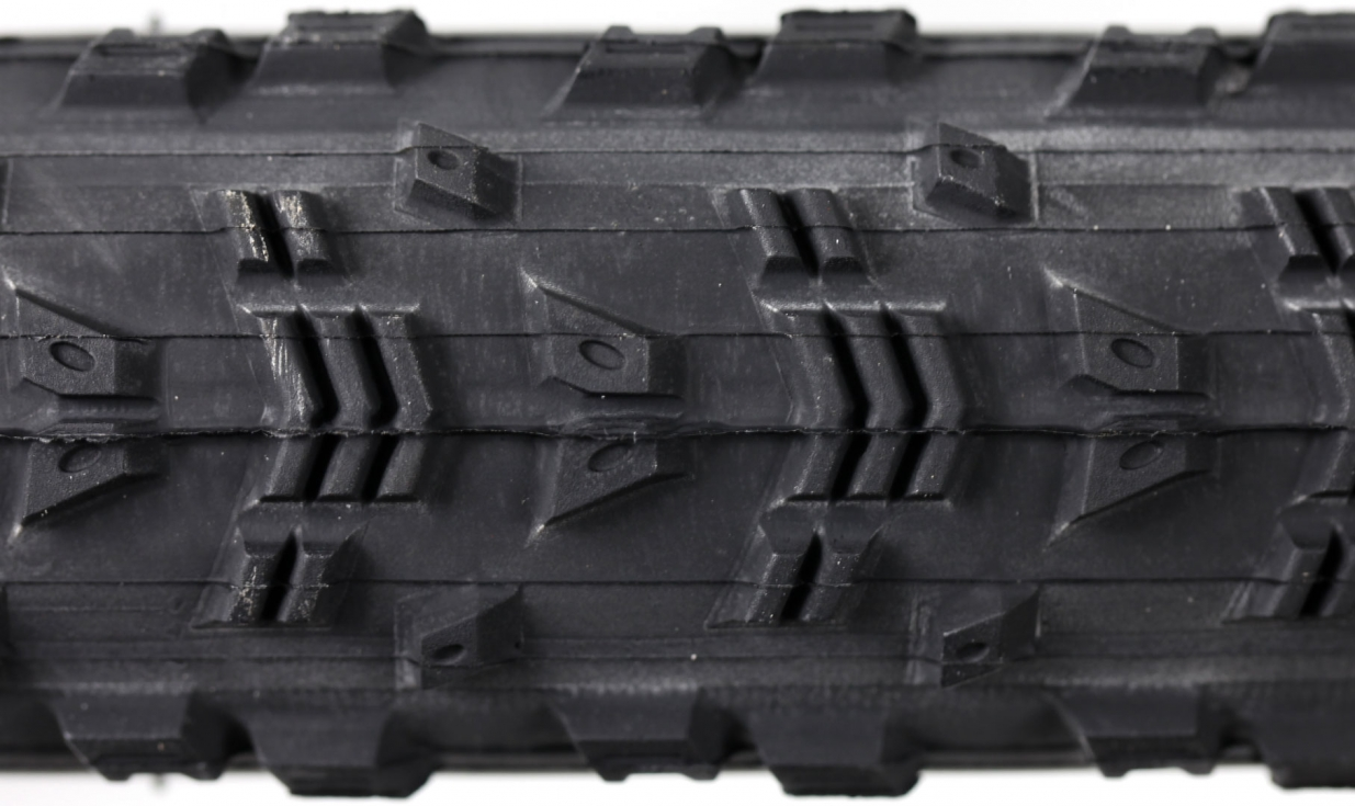 Progettato per offrire una velocità massima pur mantenendo un buon grip laterale in tutte le condizioni, dai terreni asciutti a quelli abbastanza umidi. Tasselli centrali con profilo basso a forma di micro-rampa per un rotolamento migliore. Blocchi quadrati più grandi sui lati e indici direzionali al centro del profilo per un buon grip.