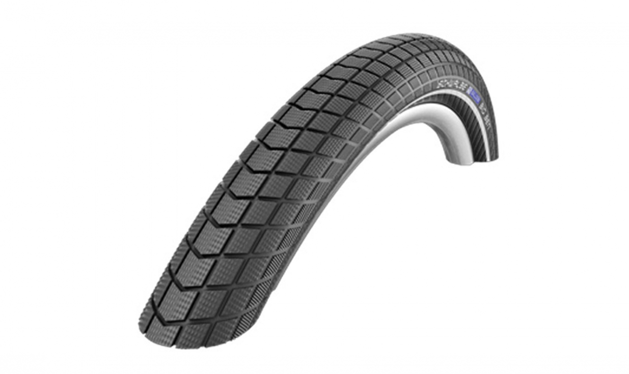 Pneumatico “Balloon” che offre grande comfort. Stesso profilo del Big Apple ma con in più dei micro-tasselli (punte di diamante). Utilizzabile su bici elettriche fino a 50 km/h (mentre il Big Apple può essere utilizzato solo fino a 25 km/h). Le dimensioni da 20″, 24″ e 26″ sono certificate ECE=R75.