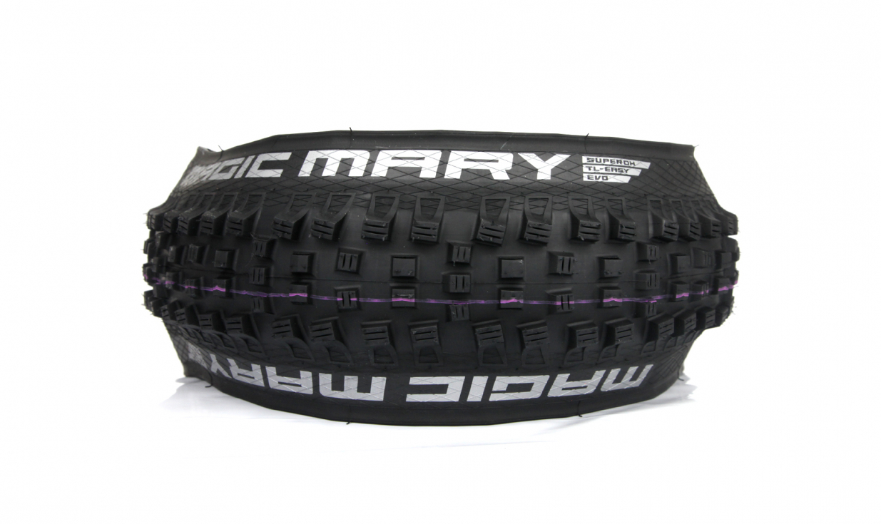 copertone MTB Schwalbe Magic Mary. Grazie alla nuova struttura Super Downhill rivisitata per una maggiore robustezza e stabilità, questo copertone resistente a qualsiasi condizione e a tutti i terreni garantisce una presa ineccepibile sui percorsi DH più esigenti.