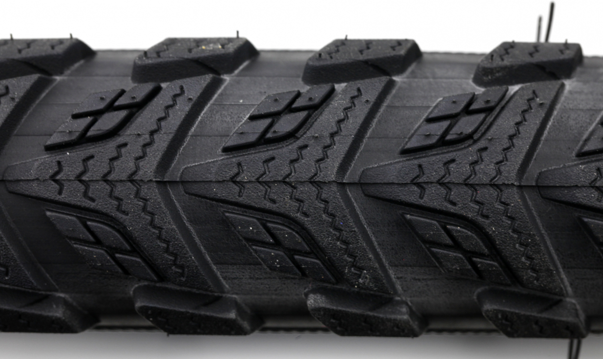 Inoltre questo copertone ha un rinforzo antiforatura DualGuard che consiste in una doppia protezione sottoforma di fascia in nylon da cerchietto a cerchietto e di mescola speciale in caucciù morbido inserita sotto al battistrada, di uno spessore di 2,5 mm.