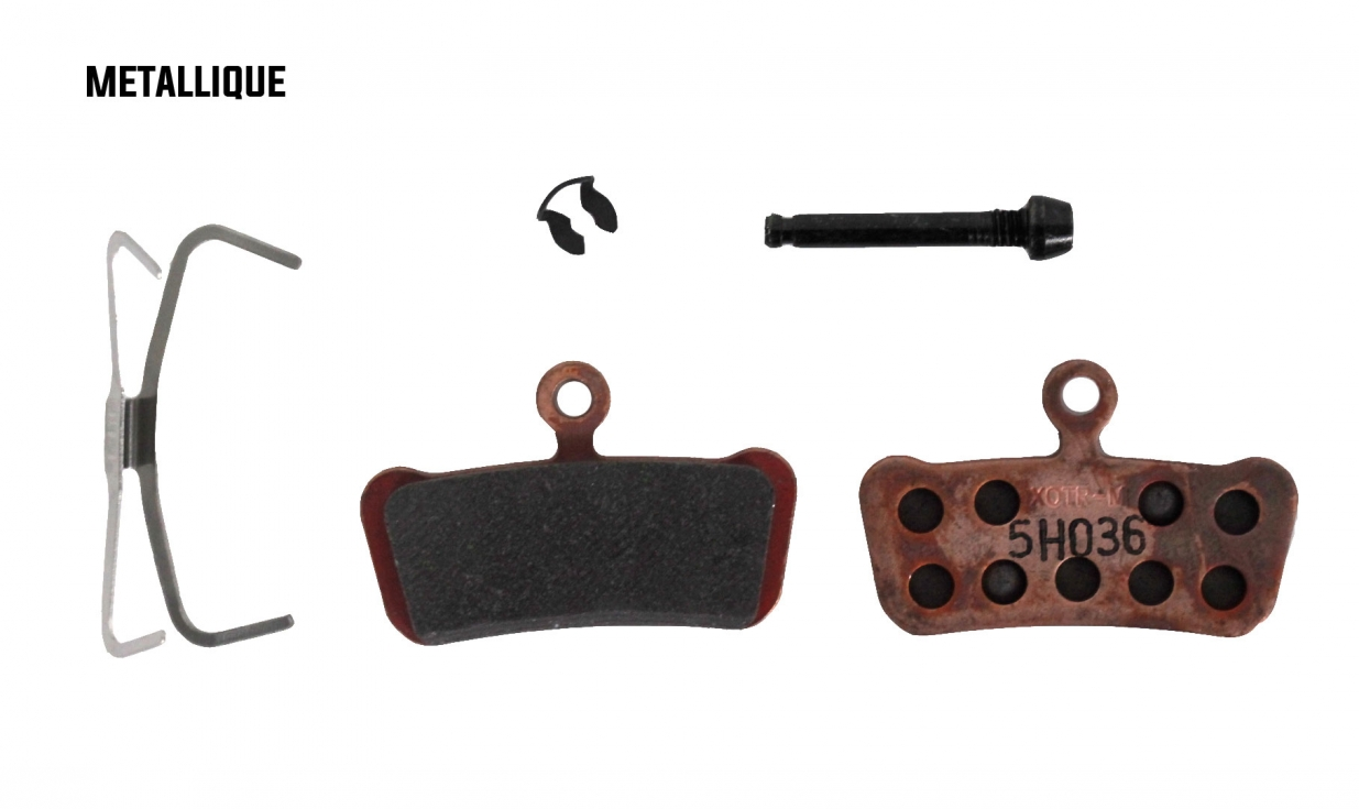 – Le pastiglie metalliche (aggregato di particelle metalliche estremamente compatte) offrono una buona frenata in tutte le condizioni, un’ottima durata e sopportano meglio gli aumenti di temperatura rispetto a quelle organiche. Da preferire in caso di lunghe discese o terreno fangoso.