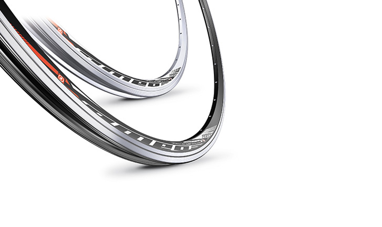 – un cerchio a doppia parete Omega Mach1 di dimensione 622-13C colore grigio anodizzato con un peso di 460 g. Il cerchio ha una larghezza interna di 13 mm, una larghezza esterna di 19 mm e ha uno spazio di 6,5 mm di diametro per il passaggio di una valvola presta. Questo è un cerchio Tubetype che richiedeil montaggio