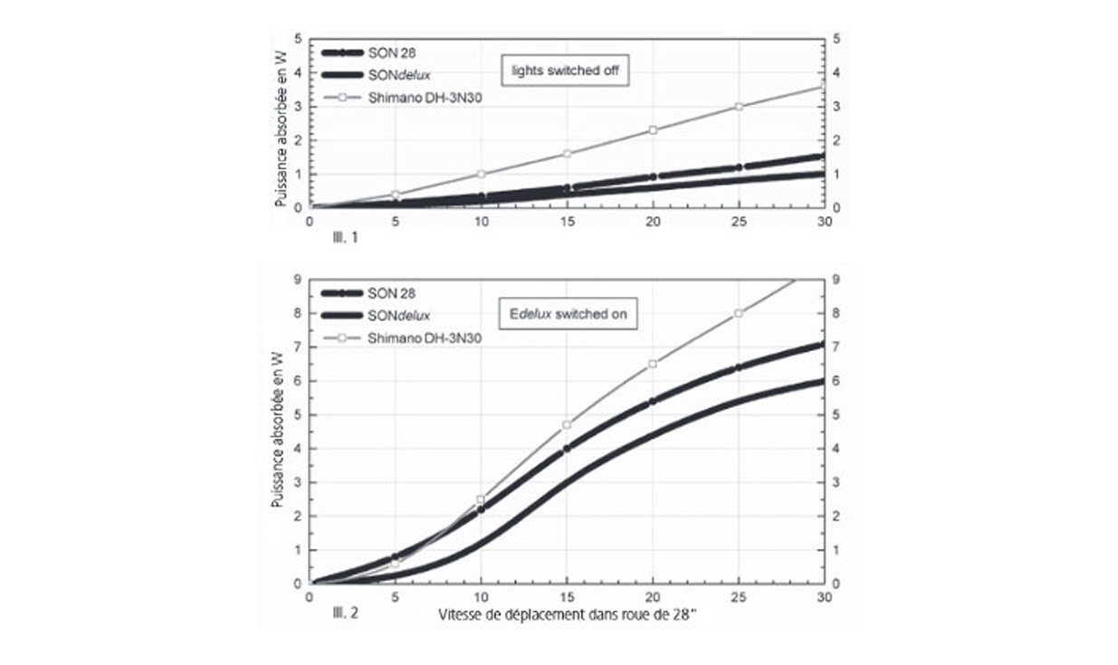 Questa ruota anteriore è dotata di un mozzo dinamo SONdeluxe con sistema di sgancio rapido. La dinamo produce una tensione di 6 volt / 3 watt, che soddisfa gli standard tedeschi di illuminazione per biciclette. Solo le luci a LED possono essere collegate. Il 65% della potenza massima è prodotta a partire da 15 km/h.
